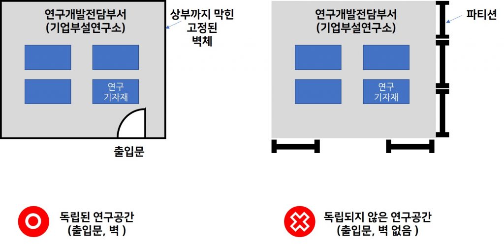 – 타부서와 공동 사용하는 경우에는 연구 설비로 인정받을 수 었으며, 연구시설은 다른 부서와 분리하여 관리되어야 한다.